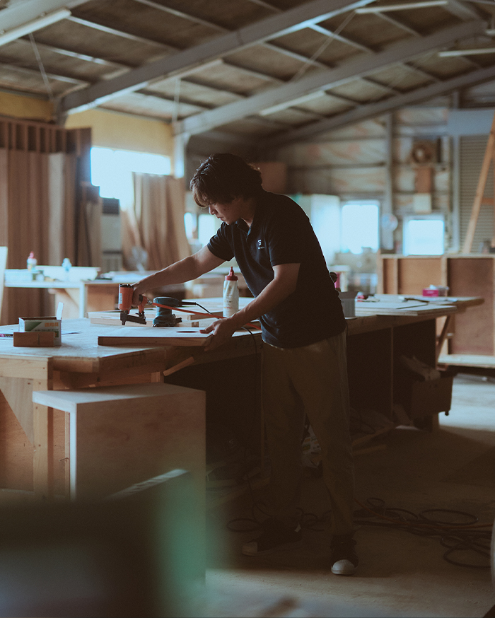 タックでは、営業はもちろん、経験豊富なデザイナーや職人が社内に在籍。さらに、千葉・東京・京都の自社工場を駆使して複雑な加工や急な資材制作にも対応可能です。 それぞれが連携することで、お客様の想いに忠実に、高品質な展示会ブースを作り上げます。