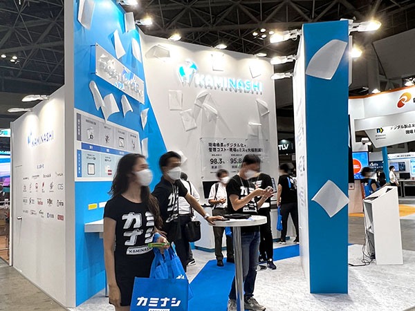 現場のデジタル化サービスをアピールする、ペーパーレスを謳うブースでは