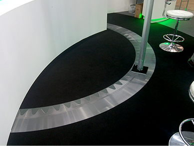ブースの床にもグラフィックを装飾することができます。床材の上に床用糊付シートを貼り込んで、一部分にグラフィックを掲出したり、全面貼りして大迫力のブースを作ることも可能です。