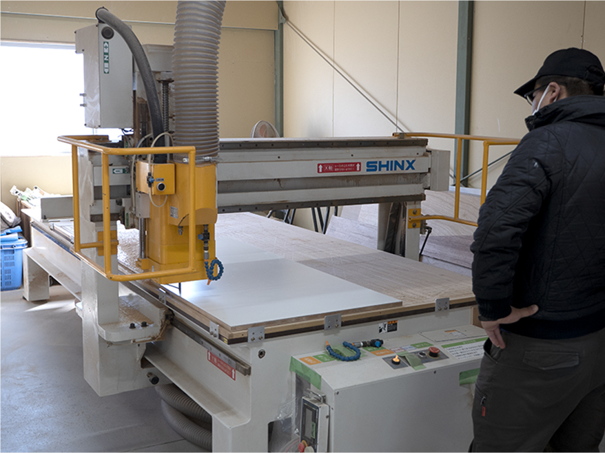 常に時代に合わせた工作機器を導入。職人の手を掛けた方が良いもの、機械の方が良いものを的確に判断し、高精度な造作の大量生産を実現しています。