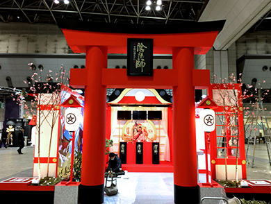 人がくぐれるほど大きな鳥居。流線形の形にもこだわりイベント用の簡易仕様で設計を考案し、ボイド管と呼ばれる円柱の材料と木工を組み合わせて美しい造形の鳥居を短期間で実現しました。