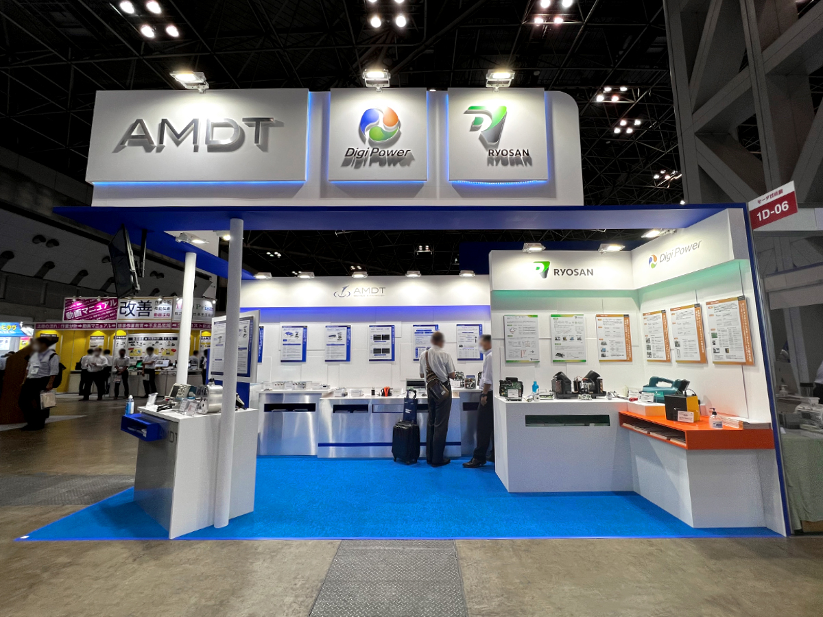 例年ご依頼いただいている有限会社青山モータードライブテクノロジー様(有限会社AMDT様)。間接照明にこだわったブースデザインで、壁面の凸凹や展示台のステンレス調シートなどもポイントとなっています。グラフィックパネルとフライヤーも弊社で制作させていただきました。(有)青山モータードライブテクノロジー様公式サイト:https://www.amdt.co.jp