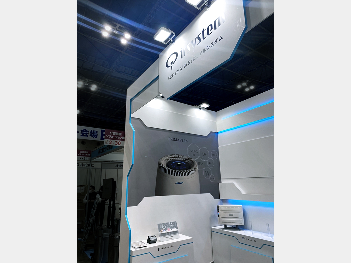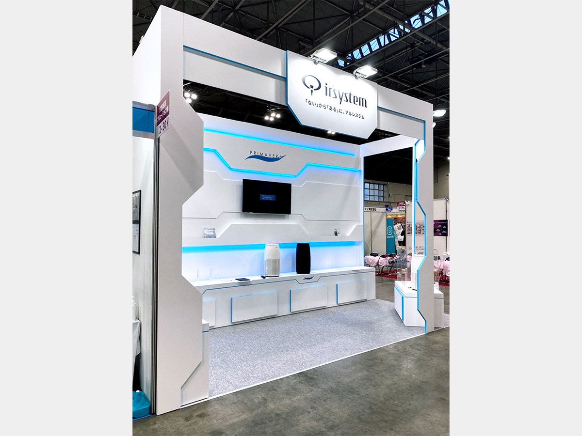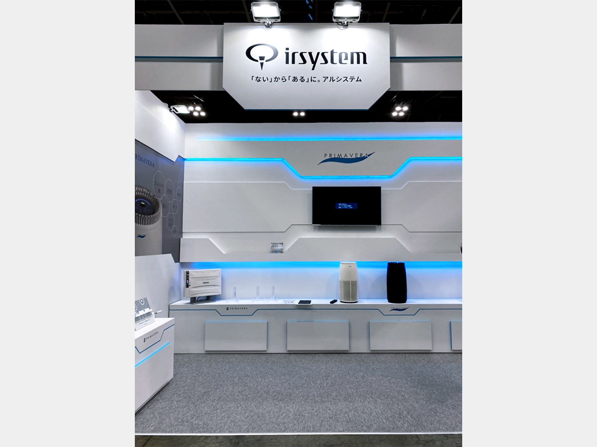 床までホワイトにした白の空間にブルーラインのライトが空気清浄機を更にさわやかに演出しました。(株)アルシステム様公式サイト:http://www.irsystem.jp