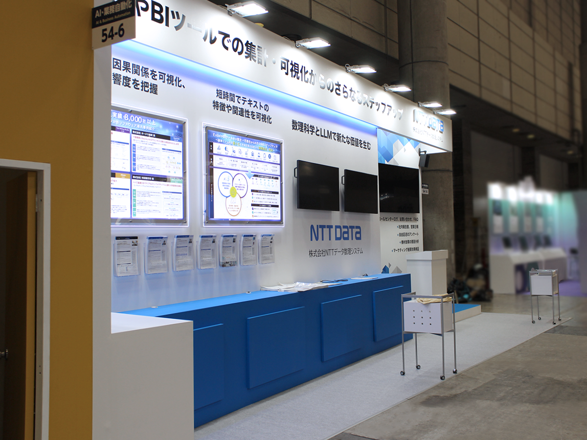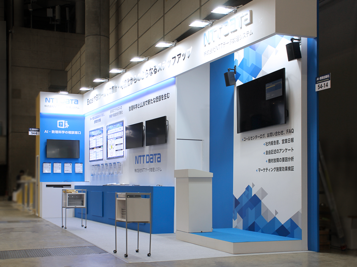 コンペにて受注、デザイン設計から施工まで担当させていただきました。細長いブースサイズとコマ位置を活かせるようにデザインいたしました。