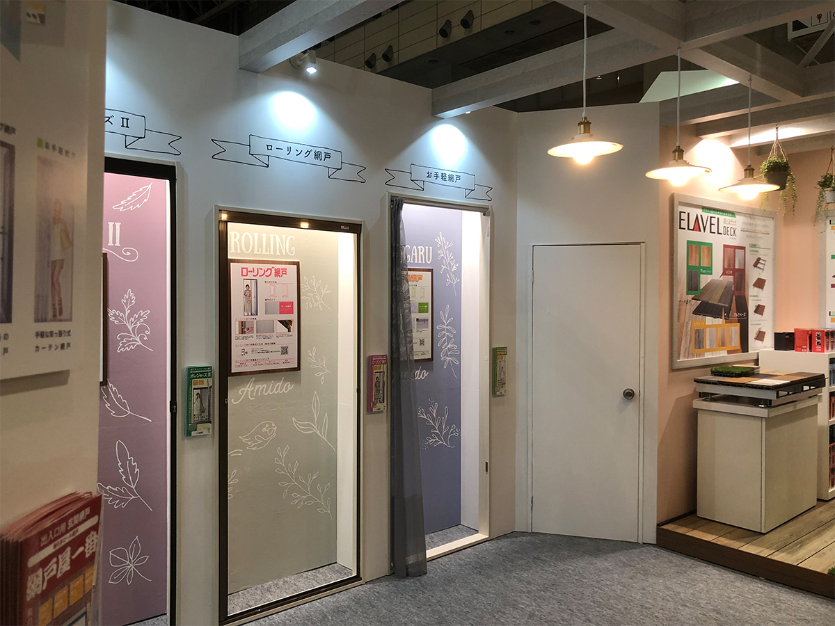 前回までのイメージを一新、DIY女子をイメージした、建材展示も兼ねた構造体のブースデザイン。女性目線を活かし、グラフィックデザイン、ディスプレイにもこだわったブースでクライアント様から大絶賛でした。社内でも話題になったようです。