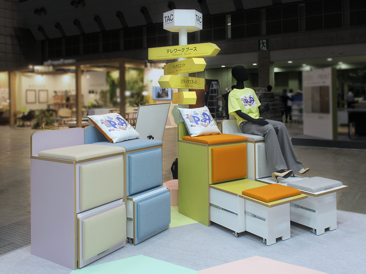 デザイン設計から施工まで担当させていただきました。昨年のオルガテック東京2023のブースカラーを継承し、ペールカラーやハニカムフォルムを取り入れ、展示商品「Paoシリーズ」の素敵な世界感を生かせるようなブースデザインに。TAC株式会社ご担当者様には大変お気遣いいただき、終始スムーズな進行と密なお打ち合わせにより細部まで調整することできました。シックなブースが多い中で、目を引く空間ができ満足度の高いブースとなりました。