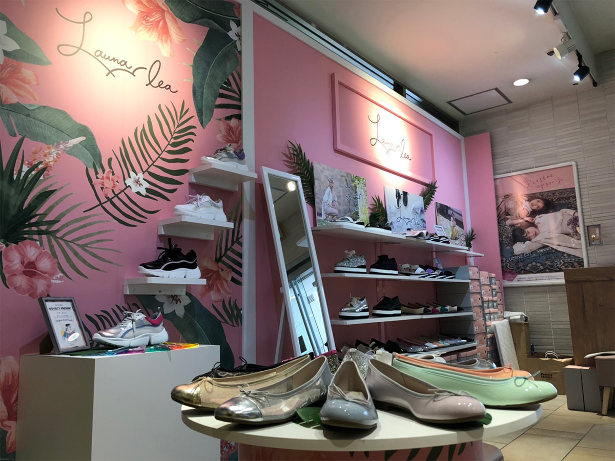 新宿ルミネエストのPOP-UP-SHOP。ルミネエストの客層に合わせ、ピンクをきかせた空間に。2つの商品が自然にまとまる”トロピカル”で”ボタニカル”な雰囲気をグラフィックデザインに落とし込み大成功となりました。